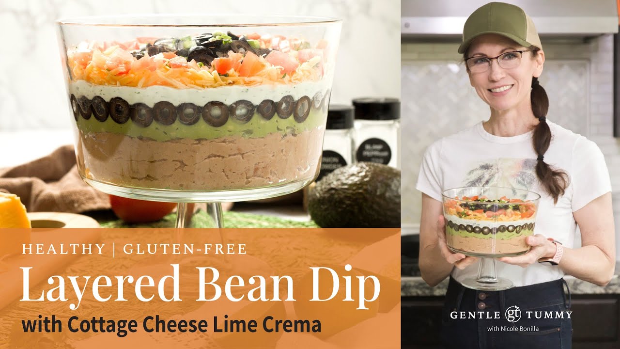 Transcription of “EASY Gluten-Free Layered Bean Dip Cottage Cheese Recipe” Video